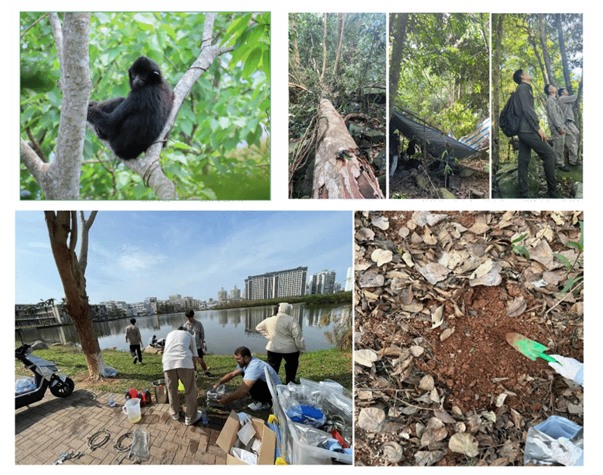 科研人员对超强台风“摩羯”灾后海南东北部森林植被、城市园林树木、长臂猿栖息地、环境质量等展开调研与采样工作