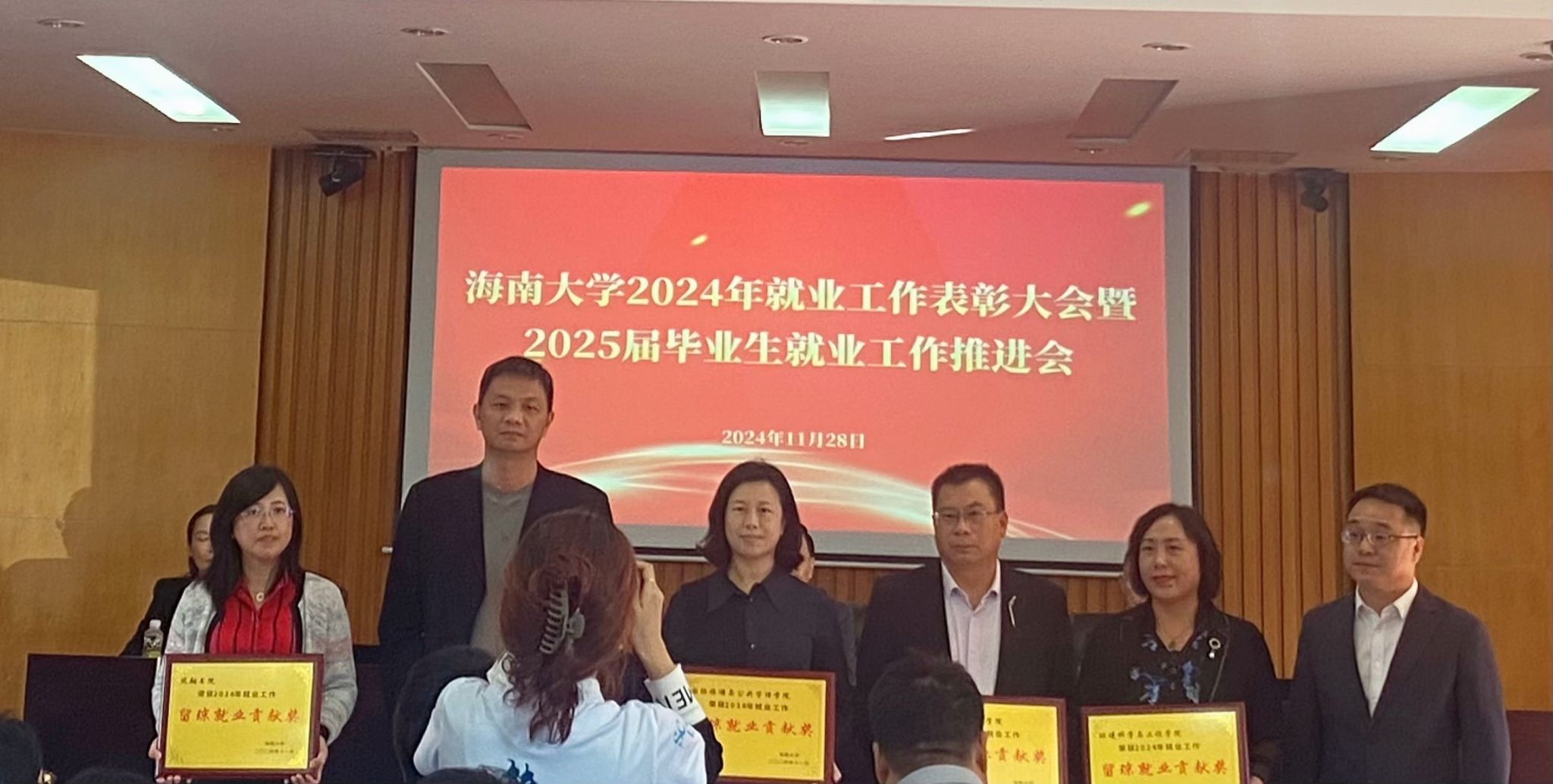 2024年11月28日,bv伟德国际1946召开2024年就业工作表彰大会暨2025届毕业生就业工作启动会议。公司就业工作成效显著,2024届毕业生去向落实率、留琼率等相关指标均名列前茅,荣获“就业工作标兵单位”“留琼就业贡献奖”两项集体荣誉称号,董丽丽老师荣获“先进个人”称号。